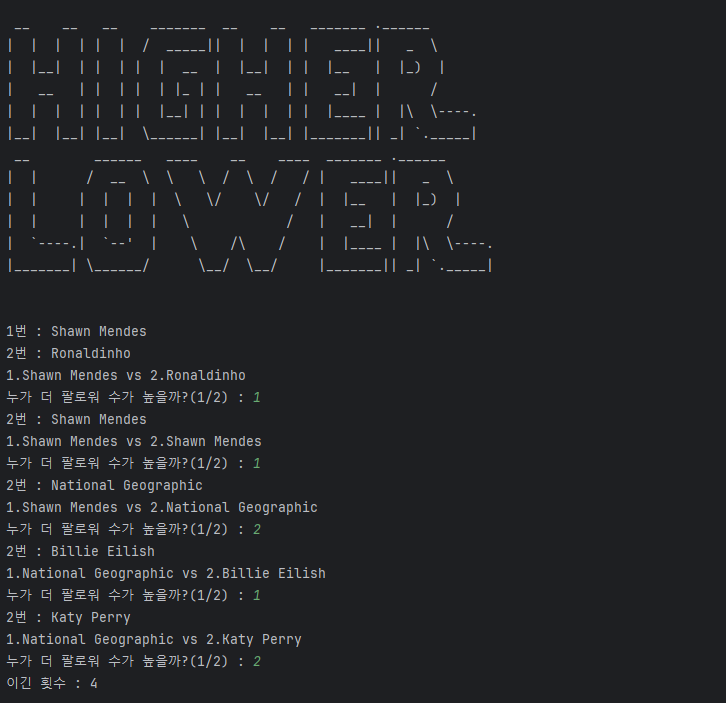chosen = input("누가 더 팔로워 수가 높을까?(1/2) : ")