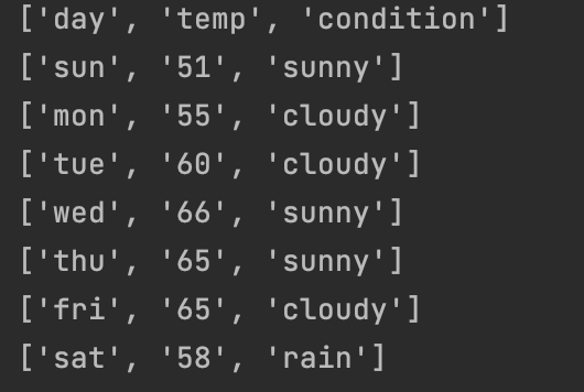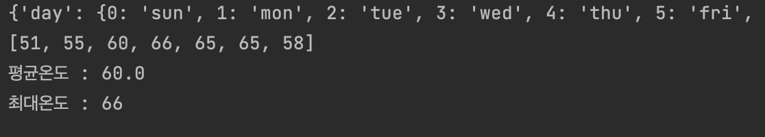 # 월요일 온도 화씨 -> 섭씨로 변경