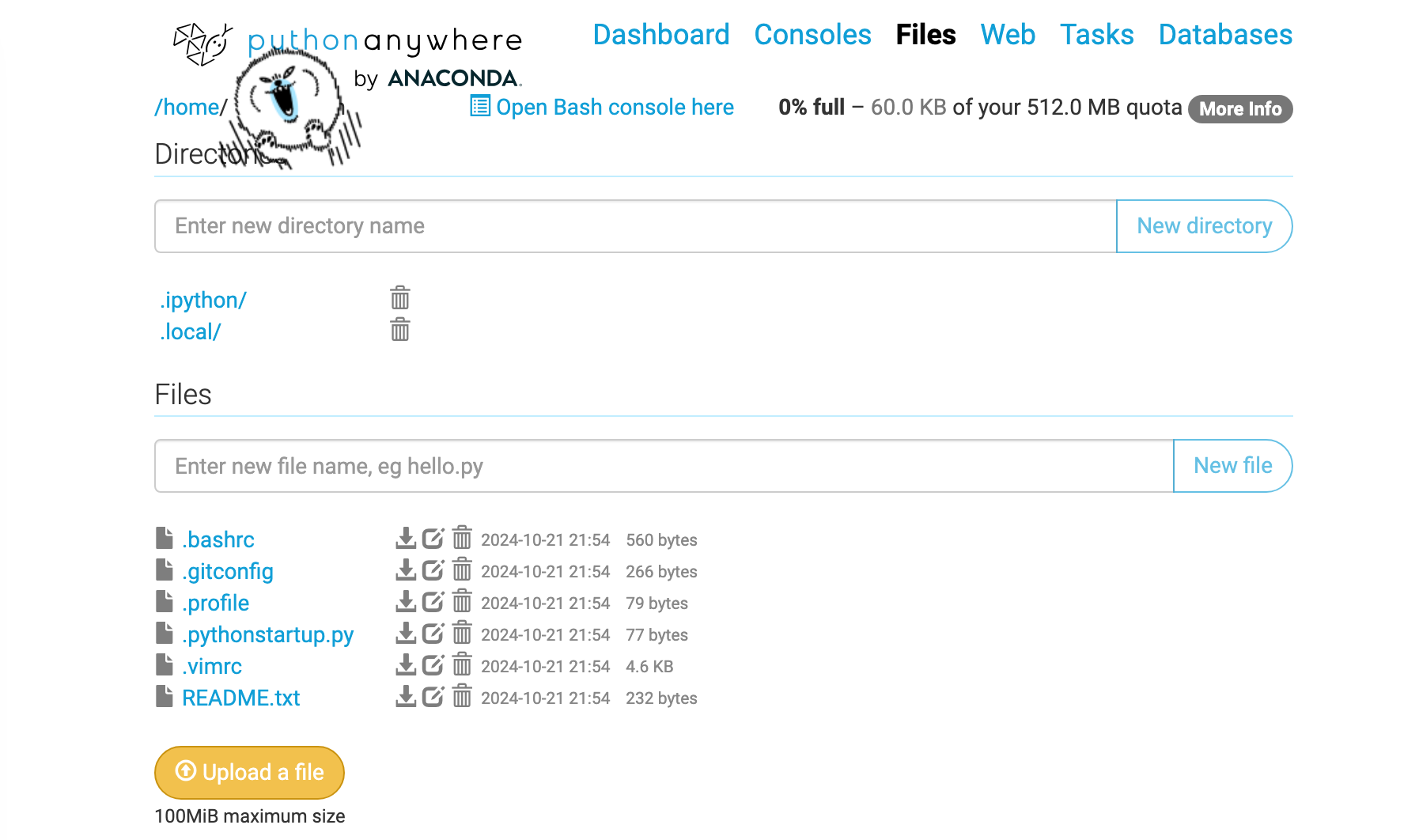 Files 탭 > Upload a file 로 실행하고픈 파일을 업로드 한다